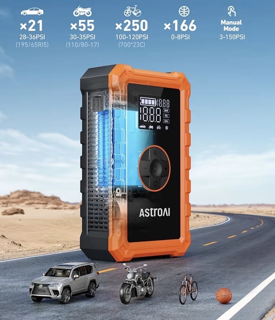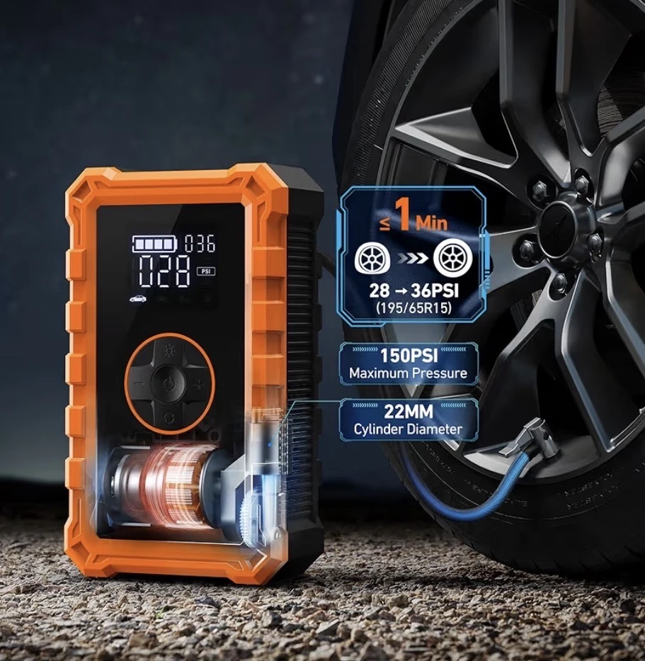 Démarreur de batterie portable avec compresseur d’air – Multifonction auto