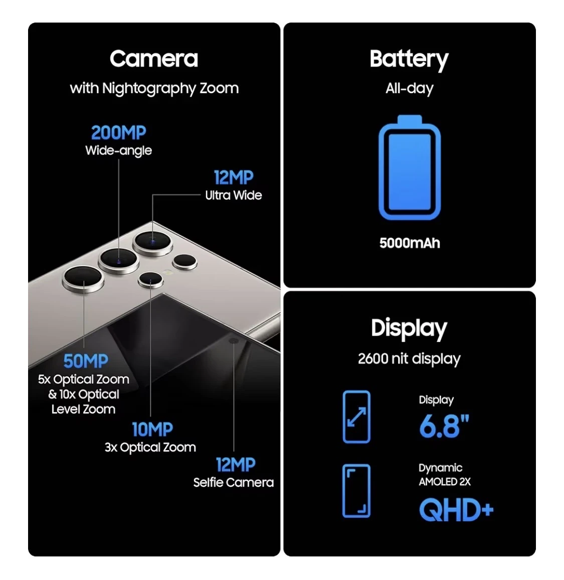 Le Galaxy S24 Ultra offre une expérience fluide grâce à un processeur haut de gamme, une intelligence artificielle intégrée pour la photo et la productivité, ainsi qu’un écran immersif haute résolution. Le châssis en titane améliore la résistance tout en conservant une finition élégante.